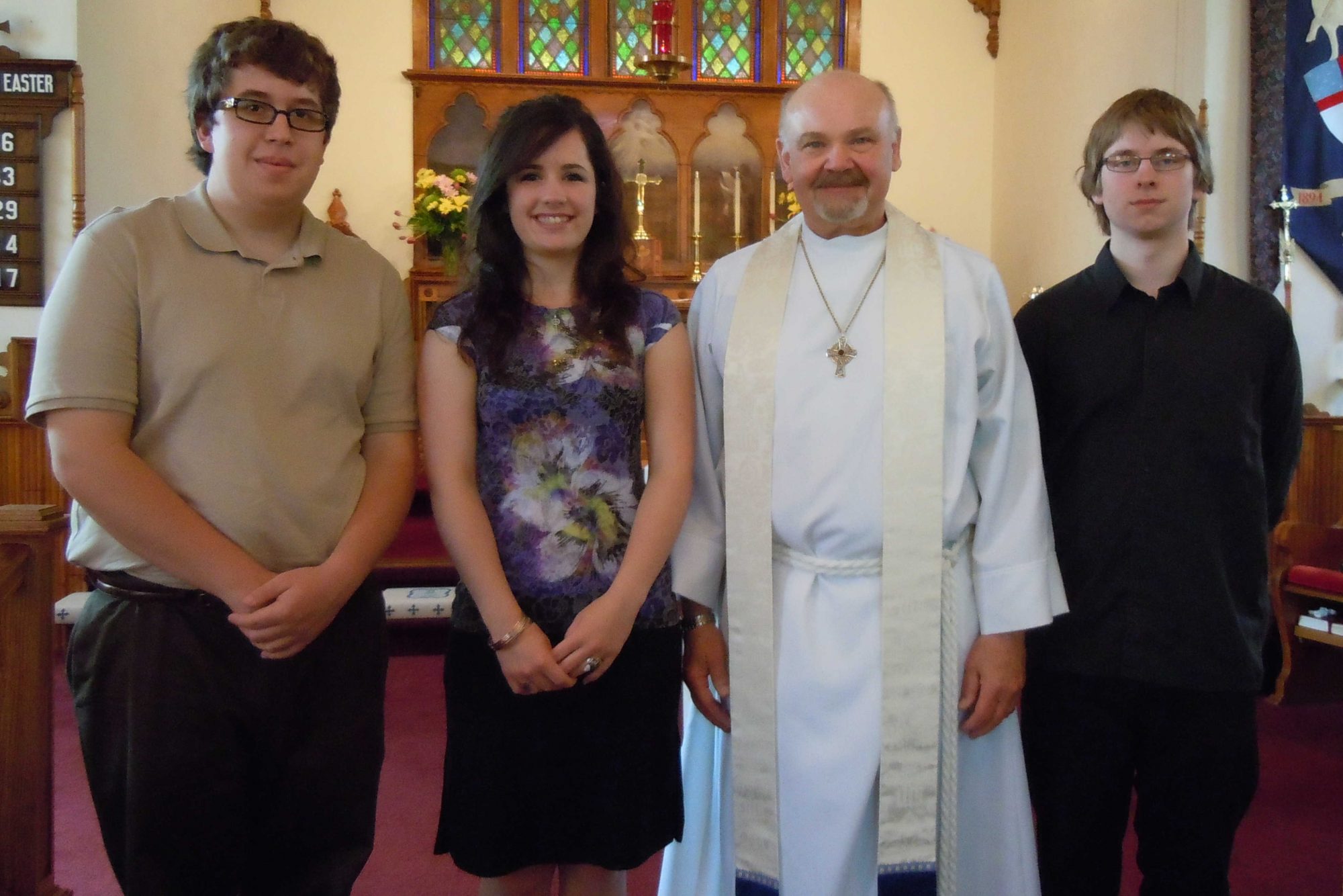 2015 CEC Scholarship Recipients (from left to right): Nicole Weston (East Jordan High School), the Rev. Thomas O’Dell (Rector of Christ Church), and Cassandra Simpson (Charlevoix High School). Stephanie Buckholz (East Jordan High School) was not able to be present for the photo.